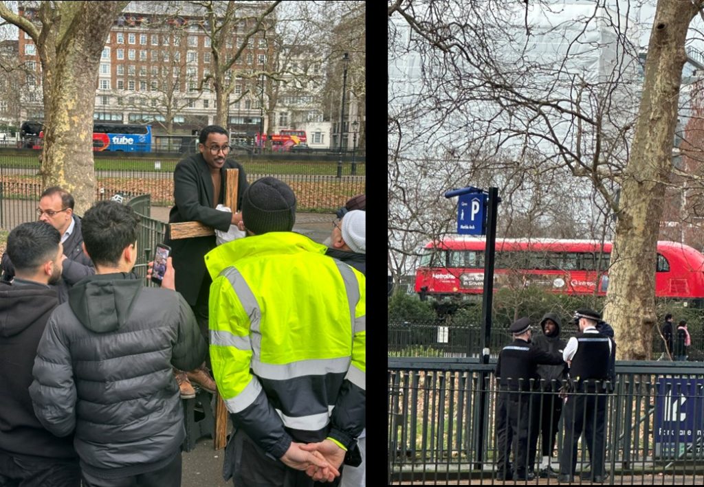 Within 10 minutes of arriving at SC there was a punch up, a Somali Moslem slapped one of the cameras filming a debate and it was fisticuffs all around him! Glad to say it only lasted a few minutes before others intervened and broke up the scuffle. The police came and the guilty man was asked to leave the park.