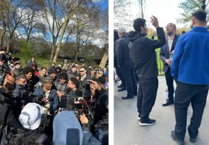 A visit to the Corner from Libyano, known on YouTube as, ‘The Orthodox Muslim’ he has a good following and where he went his crowd of supporters followed. Glad to say he left his ‘heavies’ behind, recently at Leicester square one of his entourage violently punched Chris (from Speakers Corner) in the face, blood everywhere! As expected, he fled and all of a sudden nobody knew who he was – you can see the sad incident on YouTube: CLICK HERE