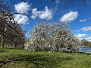 The sunshine and the blossom on the trees suggest Spring is very much here but the cold wind is a reminder that it is to early for the summer clothing!